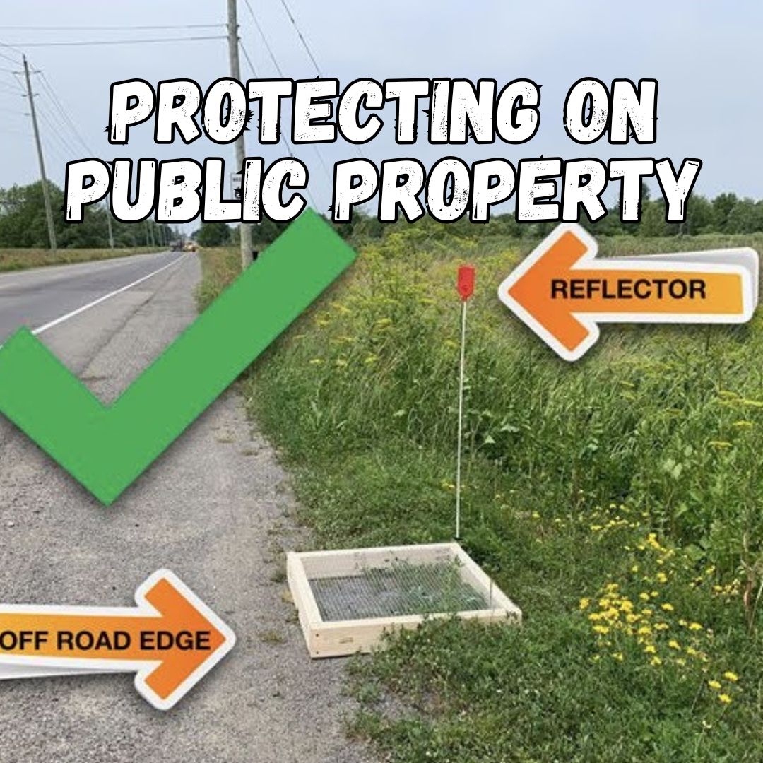 On roads, nest protectors cannot be placed entirely on the gravel of the roadside as this must be kept clear for motorists as a safety pull off zone